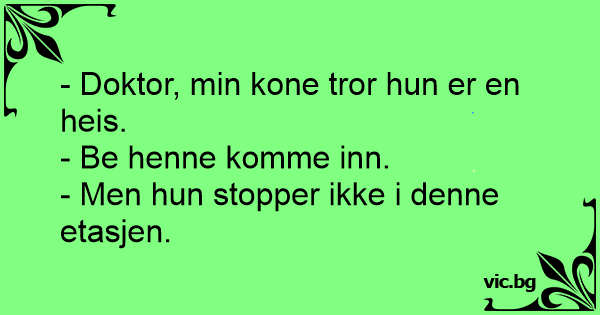 - Doktor, min kone tror hun er en heis.