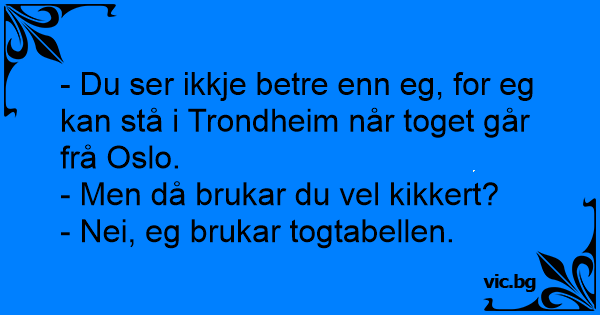 - Du ser ikkje betre enn eg, for eg kan stå i Trondheim når toget går frå Oslo.