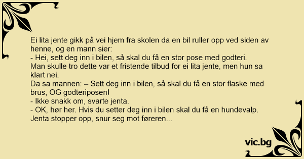 Ei lita jente gikk på vei hjem fra skolen da en bil ruller opp ved siden av henne, og en mann sier:
