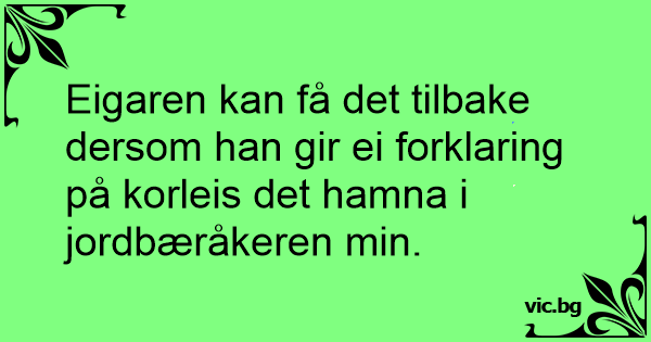 Eigaren kan få det tilbake dersom han gir ei forklaring på korleis det hamna i jordbæråkeren min.