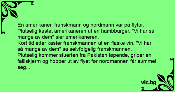 Plutselig kommer stuerten fra Pakistan løpende, griper en falllskjerm og hopper ut av flyet før nordmannen får summet seg...