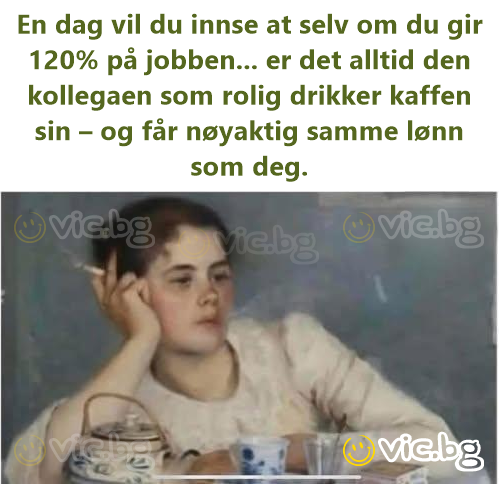 Един ден ще осъзнаеш, че дори да даваш 120% на работа... винаги има друг колега, който си пие спокойно кафето – и получава абсолютно същата заплата като теб.