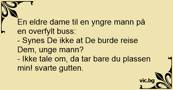 - Ikke tale om, da tar bare du plassen min! svarte gutten.