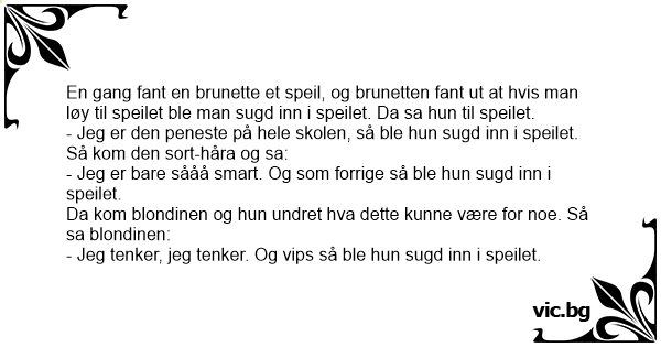 En gang fant en brunette et speil, og brunetten fant ut at hvis man løy til speilet ble man sugd inn i speilet. Da sa hun til speilet.