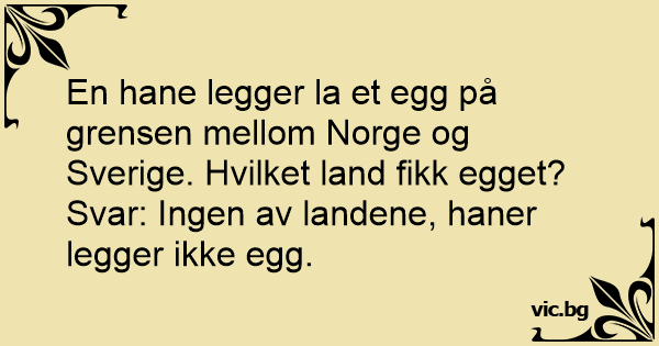 En hane legger la et egg på grensen mellom Norge og Sverige. Hvilket land fikk egget?