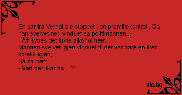 En kar frå Verdal ble stoppet i en promillekontroll. Da han sveivet ned vinduet sa politimannen...