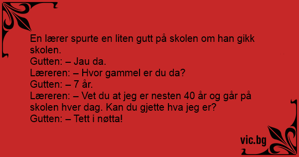 Læreren: – Vet du at jeg er nesten 40 år og går på skolen hver dag. Kan du gjette hva jeg er?