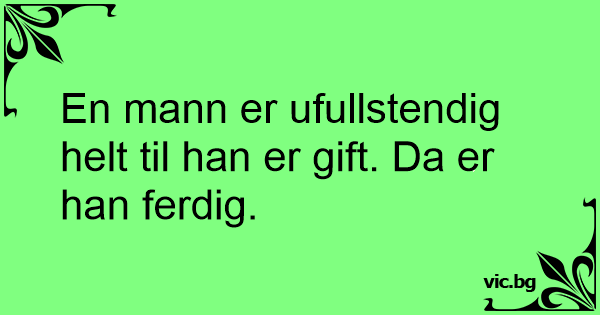 En mann er ufullstendig helt til han er gift. Da er han ferdig.