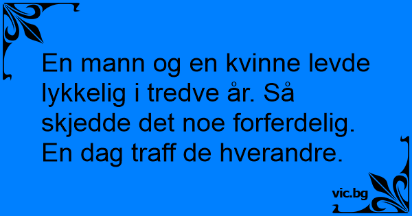 En mann og en kvinne levde lykkelig i tredve år. Så skjedde det noe forferdelig. En dag traff de hverandre.
