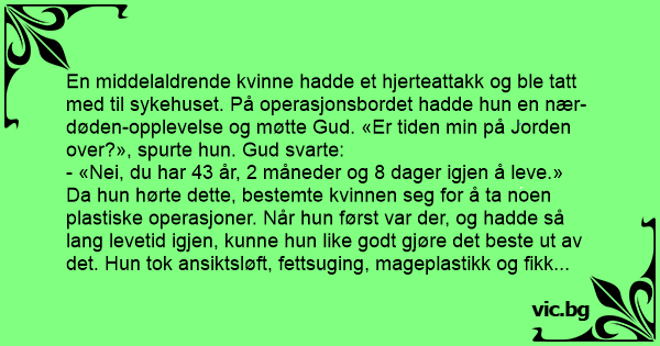 - «Nei, du har 43 år, 2 måneder og 8 dager igjen å leve.»