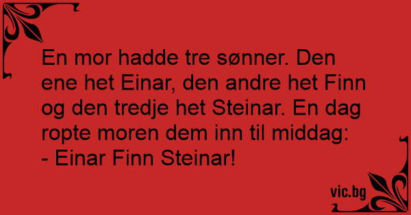 En mor hadde tre sønner. Den ene het Einar, den andre het Finn og den tredje het Steinar. En dag ropte moren dem inn til middag: