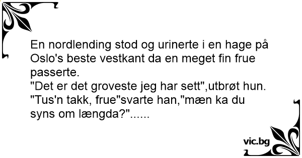 "Tus'n takk, frue"svarte han,"mæn ka du syns om længda?"......