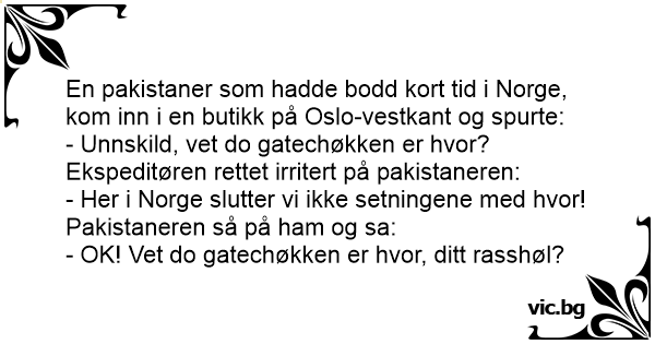 En pakistaner som hadde bodd kort tid i Norge, kom inn i en butikk på Oslo-vestkant og spurte: