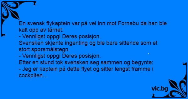 - Jeg er kaptein på dette flyet og sitter lengst framme i cockpiten…