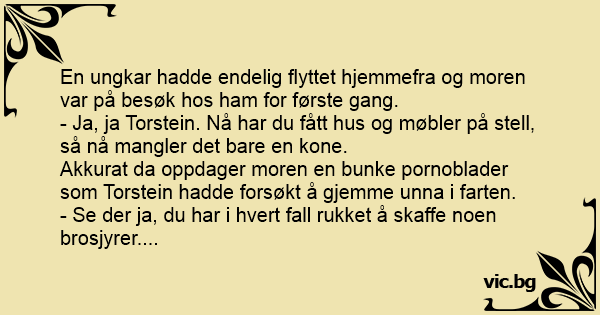 Akkurat da oppdager moren en bunke pornoblader som Torstein hadde forsøkt å gjemme unna i farten.