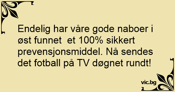 Endelig har våre gode naboer i øst funnet et 100% sikkert prevensjonsmiddel. Nå sendes det fotball på TV døgnet rundt!