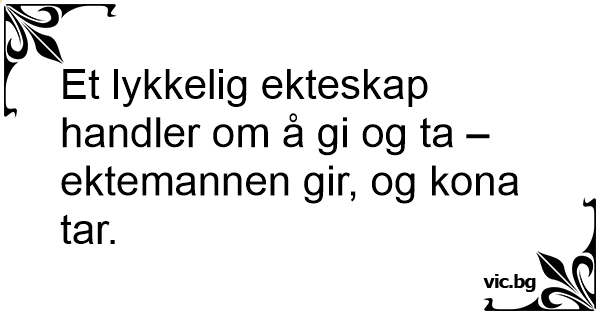 Et lykkelig ekteskap handler om å gi og ta – ektemannen gir, og kona tar.