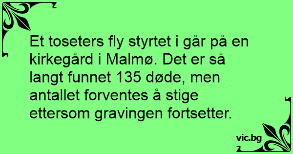 I en norsk nyhetssändning på TV: - En helikopter störtade i morse på en kyrkogård i Oslo. Hittills har 270 döda hittats.