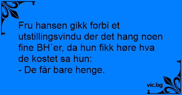 Fru hansen gikk forbi et utstillingsvindu der det hang noen fine BH`er, da hun fikk høre hva de kostet sa hun: