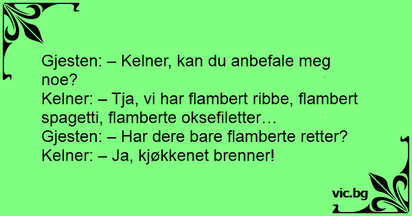 Kelner: – Tja, vi har flambert ribbe, flambert spagetti, flamberte oksefiletter…