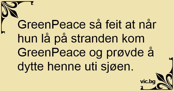 GreenPeace så feit at når hun lå på stranden kom GreenPeace og prøvde å dytte henne uti sjøen.