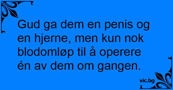 Gud ga dem en реnis og en hjerne, men kun nok blodomløp til å operere én av dem om gangen.
