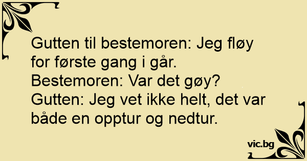 Gutten til bestemoren: Jeg fløy for første gang i går.