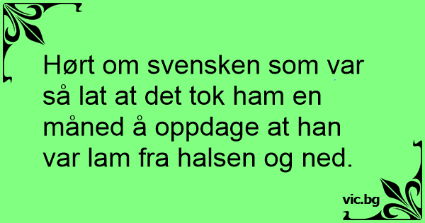 Hørt om svensken som var så lat at det tok ham en måned å oppdage at han var lam fra halsen og ned.