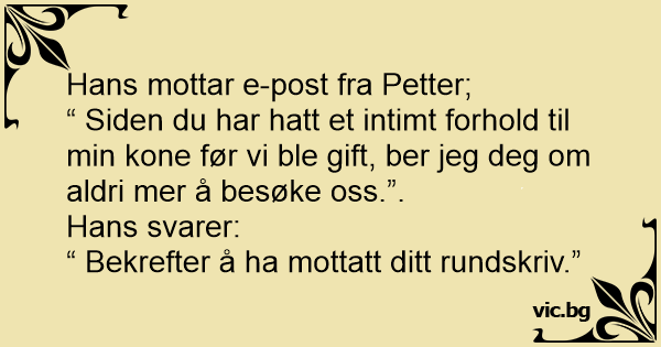 “ Siden du har hatt et intimt forhold til min kone før vi ble gift, ber jeg deg om aldri mer å besøke oss.”.