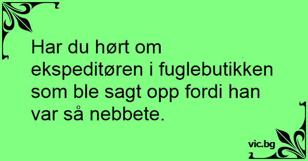 Har du hørt om ekspeditøren i fuglebutikken som ble sagt opp fordi han var så nebbete.
