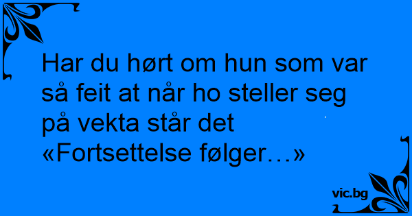 Har du hørt om hun som var så feit at når hо steller seg på vekta står det «Fortsettelse følger…»