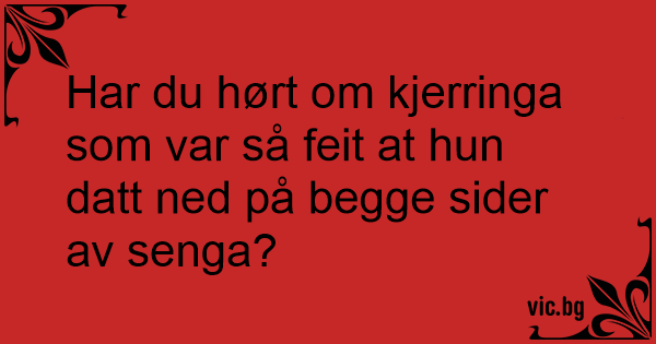 Har du hørt om kjerringa som var så feit at hun datt ned på begge sider av senga?