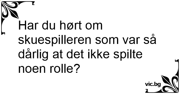 Har du hørt om skuespilleren som var så dårlig at det ikke spilte noen rolle?
