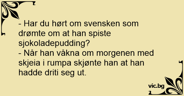 - Har du hørt om svensken som drømte om at han spiste sjokoladepudding?
