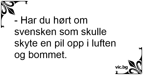 - Har du hørt om svensken som skulle skyte en pil opp i luften og bommet.