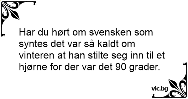 Har du hørt om svensken som syntes det var så kaldt om vinteren at han stilte seg inn til et hjørne for der var det 90 grader.