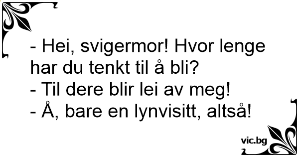 Han var godt nok ikke glad for sine svigerforældre. Da de kort efter brylluppet igen dukker op en dag, spørger han: - Nå, hvor længe bliver I så denne gang…? - Til det øjeblik hvor vi mærker, at...