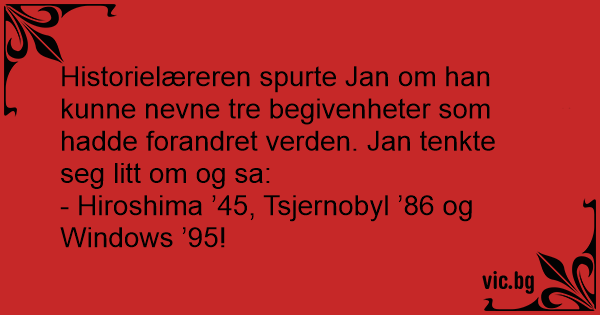 - Hiroshima ’45, Tsjernobyl ’86 og Windows ’95!