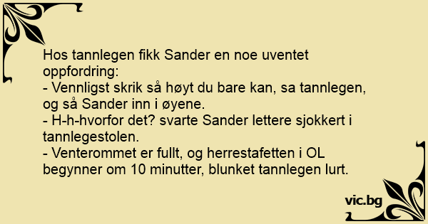 Зъболекарят казва на пациента: Mentre sta lavorando con il trapano il dentista dice al paziente: "Per favore, potrebbe lanciare qualche urlo disperato di dolore?" "Ma dottore, non mi sta facendo così male..." "Sì, lo so, ma tra poco inizia la partita e nell'atrio ci sono ancora quattro persone!" Un dentista le dice a su paciente: - Oiga, ¿podría ayudarme?. Grite lo más fuerte posible simulando mucho dolor. El paciente contesta: - ¿Pero por qué?. ¿No será eso malo para usted?. - Ya, pero es que hay mucha gente en la sala de espera y no quiero perderme el partido de fútbol de las 7. Un dentista, después de completar el trabajo en un paciente, vino a le dice al paciente: ¿Podrías por favor ayudarme? ¿Podrías por favor dar tu grito más fuerte y doloroso? El paciente responde:... A dentist, after completing work on a patient, came to him and asked; “could you help me? Could you give out a few of your loudest, most painful screams?” The surprised patient said; “why doctor,... Un dentist, dupa ce isi termina lucrarea, ii spune pacientului: - Imi faci un serviciu?Poti sa tipi foarte tare de cateva ori? - Pai de ce, ca de data asta nu a fost chiar asa de rau?! - Pai da,... A vizsgálat befejeztével a fogorvos azt mondja a páciensnek: - Megkérhetem, hogy üvöltsön 2-3 jó hangosat? - Miért tenném doktor úr, hiszen egyáltalán nem fájt! - Igen, de még tele van a várószoba... Zubař prosí pacienta: „Buďte tak hodný a zakřičte, prosím!” „A pročpak?” „Čekárna je plná pacientů a za chvíli začíná v televizi fotbal.” Een tandarts tegen een pati?: "Zou u zo vriendelijk willen zijn even heel hard te schreeuwen?" "Waarom?" ,vraagt de pati?. Tandarts: "Zoals u hebt gezien zit miin wachtzal heel vol en ik zou om 17u... - Te rog, urla cat poti Tu de tare! imi zise dentistul. - Dar de ce as face Asta? il intreb. - Sala de asteptare e plina, Iar peste 10 minute incepe meciul Steaua - Molde!