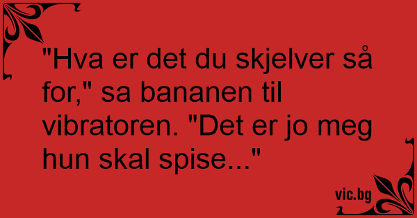 "Hva er det du skjelver så for," sa bananen til vibratoren. "Det er jo meg hun skal spise..."