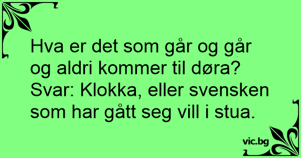 Svar: Klokka, eller svensken som har gått seg vill i stua.