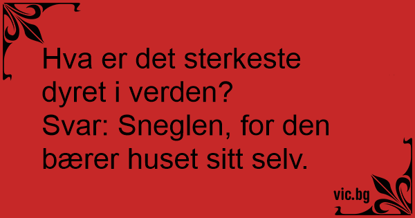 Svar: Sneglen, for den bærer huset sitt selv.