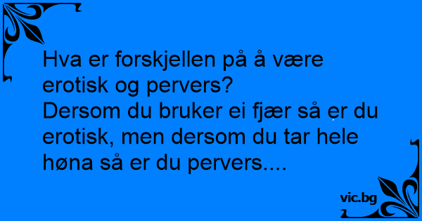 Care e diferenta dintre erotic si pervers? Erotic e cand folosesti pana si fulgul iar pervers e cand folosesti toata gaina