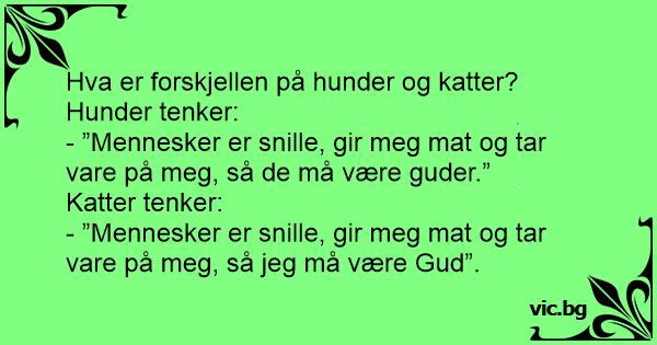 Unterschied Hund und Katze ΣΚΕΨΕΙΣ Σκέψεις κατοικίδιων Какво си мисли кучето: Кучето си мисли: " Ето моя собственик...Грижи се за мен, храни ме, играе си с мен, ..Сигурно е Бог!" Los perros piensan: "Los seres humanos son benévolos, me dan de comer y cuidan de mí; deben de ser Dioses." Los Gatos piensan: "Los seres humanos son benévolos, me dan de comer y cuidan de mí;... Le chien pense: Ils me nourrissent, ils me soignent, ils doivent être des dieux. Le chat pense: Ils me nourrissent, ils me soignent, je dois être un dieu. Ero kissan ja koiran välillä. - Koira ajattelee: Tuo ihminen hoitaa minnua, ruokkii minut ja on minulle muutenkin hyvä. Hän on jumala! - Kissa ajattelee: Tuo ihminen hoitaa minnua, ruokkii minut ja... Egy kutya gondolatai: - Itt lakom ezzel az emberrel, aki etet engem, meleg szállást biztosít, simogat és szeret engem. Ezek szerint ő az Isten! Egy macska gondolatai: - Itt lakom ezzel az emberrel.... Šuo: Jis mane maitina, Jis manimi rūpinasi, Jis suteikia man pastogę, Jis turbūt Dievas!Katinas: Jis mane maitina, Jis manimi rūpinasi, Jis suteikia man pastogę, Aš turbūt Dievas! Пес: — Він мене годує, він про мене дбає, він дає мені дах над головою - мабуть, він Бог! Кішка: — Він мене годує, він про мене дбає, він дає мені дах над головою - мабуть, я Бог! Pes: „Pán mě krmí, stará se o mě, dává mi střechu nad hlavou - určitě to je Bůh!” Kočka: „Pán mě krmí, stará se o mě, dává mi střechu nad hlavou - určitě jsem Bůh!” What is the difference between a cat and a dog? Dogs think, "Humans are benevolent, they feed me and take care of me, so they must be Gods. Cats think, "Humans are benevolent, they feed me and take...