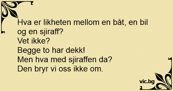 Hva er likheten mellom en båt, en bil og en sjiraff?