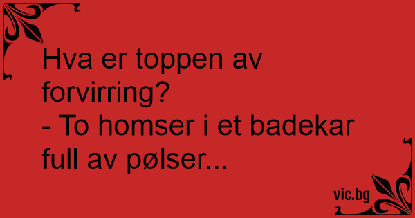- To homser i et badekar full av pølser...