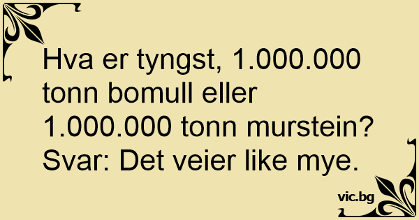 Hva er tyngst, 1.000.000 tonn bomull eller 1.000.000 tonn murstein?
