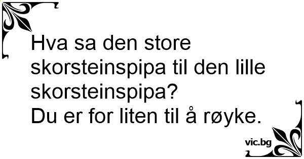 Hva sa den store skorsteinspipa til den lille skorsteinspipa?