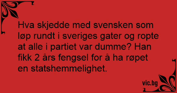 Hva skjedde med svensken som løp rundt i sveriges gater og ropte at alle i partiet var duмме? Han fikk 2 års fengsel for å ha røpet en statshemmelighet.