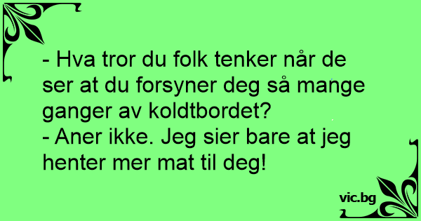 - Aner ikke. Jeg sier bare at jeg henter mer mat til deg!